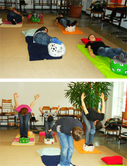 In der nächsten Stufe wird langsam, Stück für Stück, ein neues, fiüssiges Sprechmuster gelernt. Dies kann als direkte Methode bezeichnet werden. Sprechleistungsstufen , begonnen mit dem Nachsingen von Vokalen über Nachsprechen von Gedichtversen bis hin zum Lesen und zum freien Sprechen sind Bestandteil der Therapie. Dies geschieht alles in atemzwingender beziehungsweise atemregulierender Bewegung und mit Hilfe einer stotterinkompatiblen Sprechweise: Die erste Silbe eines Wortes beziehungsweise einer Sprecheinheit wird dabei leicht gedehnt und betont. Zwischen diesen Einheiten liegen kurze atemphysiologische Pausen. Das Symptom des Stotternd selbst wird zu keiner Zeit thematisiert oder behandelt.